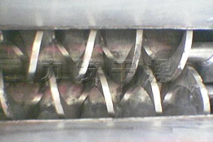 空心轴上密集排列着楔型中空浆叶,热介质经空心轴流经浆叶。单位有效容积内传热面积很大,热介质温度从-40℃到320℃,可以是水蒸汽,也可以是液体型:如热水、导热油等。间接传导加热,没有携带空气带走热量,热量均用来加热物料。热量损失仅为通过器体保温层向环境的散热。楔型浆叶传热面具有自清洁功能。物料颗粒与楔型面的相对运动产生洗刷作用,能够洗刷掉楔型面上附着物料,使运转中一直保持着清洁的传热面。浆叶干燥机的壳体为Ω型,壳体内一般安排二到四根空心搅拌轴。壳体有密封端盖与上盖,防止物料粉尘外泄而充分发挥作用。